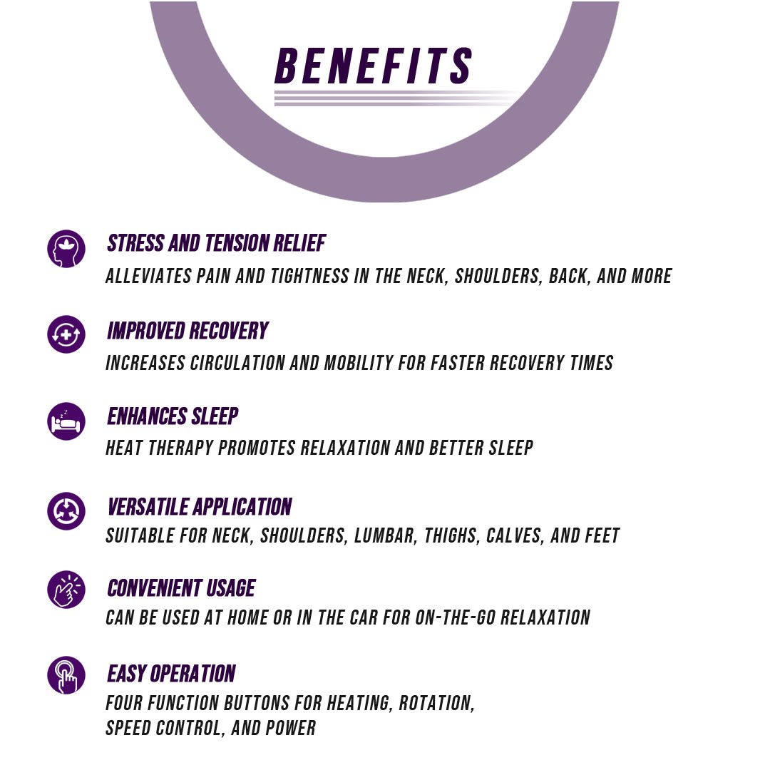 Not only does it help to relieve stress and tension, but it also aids in improving recovery times. Using bi-directional movement that mimics the feeling of a personal massage, this massager helps increase circulation for improved mobility. The heat therapy feature also helps to promote better sleep.